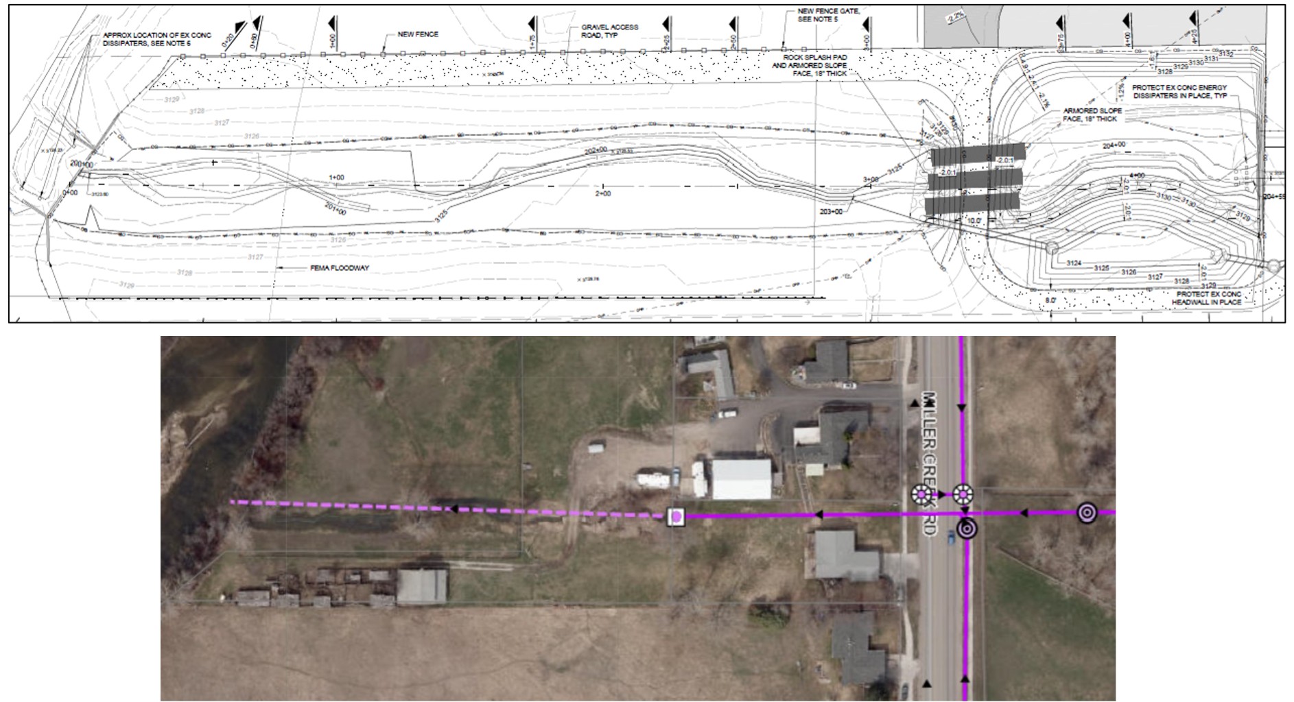 - Upgrading the undersized culvert crossing located downstream of the flap gate to accommodate the 1% annual chance flood event.