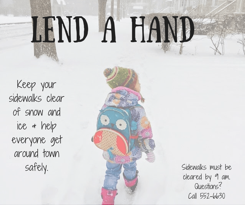 ◦To report sidewalks that have not been cleared, call 406-552-6630 or fill out the Sidewalk Snow/Ice Complaint Form.