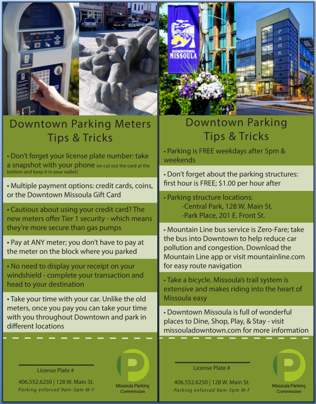 The Missoula Parking Commission (MPC) plays an important role in making Missoula's downtown a great experience. Our mission is to work with government, businesses, and citizens to provide and manage parking and parking alternatives. MPC identifies and responds to the ever-changing parking needs in the area for which it is responsible.